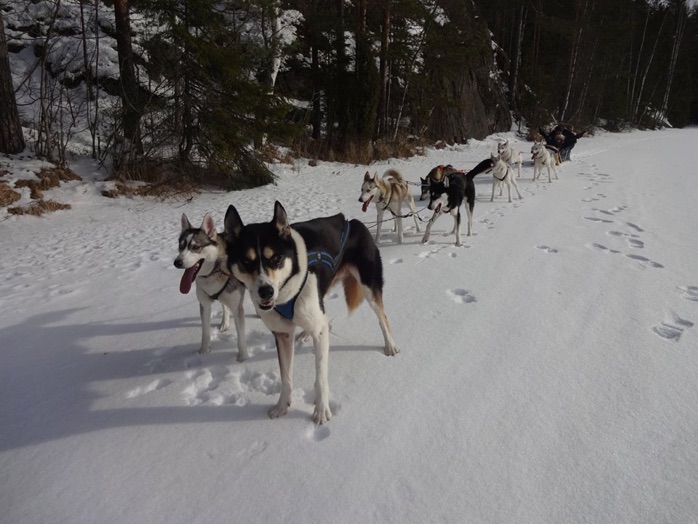 We had one of the nicest sled dog rides today with a happy couple from Germany. Nice drive and a feeling in sunny conditions.