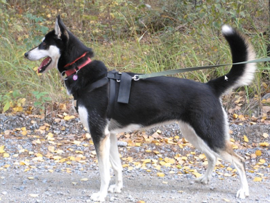 Ava-girl runs eagerly, keeps the speed and pace well, is obedient, listens well and is very trustworthy. She has run both long distance and sprint races and has done extremely well: 11 Rek1 -class sled-dog qualifications and Finnish Championship 2013 in 8-dog sprint, with Susanna Bürkland.
