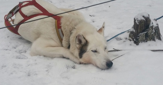 Cannon is a strong and friendly boy, who works with awesome sled dog attitude. - Whether the work is about longer dog sledding expeditions or pulling shorter rounds, he just eagerly pulls and pulls - with great motivation. He doesn’t seem to be minding at all of any smells of the nature when he is in harness. Cannon is an easy dog to manage in the pact and in work. Cannon eats and drinks ‘like a maniac’. When he feels that there is some action in the stake-out area (time to go out - time to get the food) he is one of the first ones to notify with a cheerful bark. Being a fine sled dog, he wants to quickly get going.