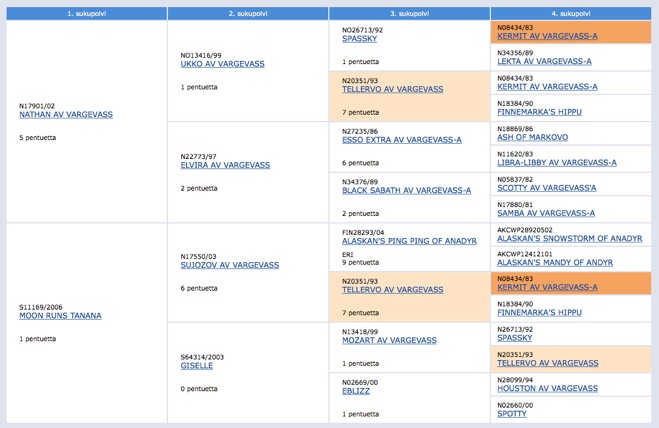 Cannon is a Vargevass dog. His father Nathan is a famous old leader and his mother is the Moon Runs lead dog. Giselle is the friendly foundation bitch of Moon Runs. Sujozov is THE Swedish Siberian 2009. - Please click on the ancestor chat to see the pedigree chart online with much more details.