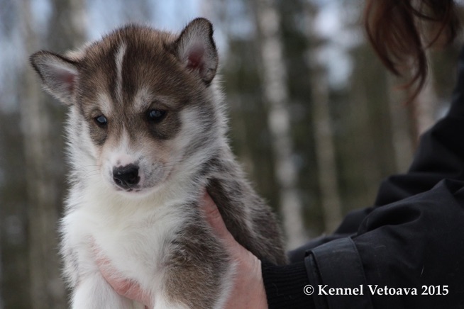 Vetoava Comur ‘Ruska’ is one of of our own bred Siberians from our C-litter. He is a well-behaving friendly Siberian male, who is a workhorse in pulling. As all of Ava’s and Kiri’s descendants, he has long legs, made for pulling.