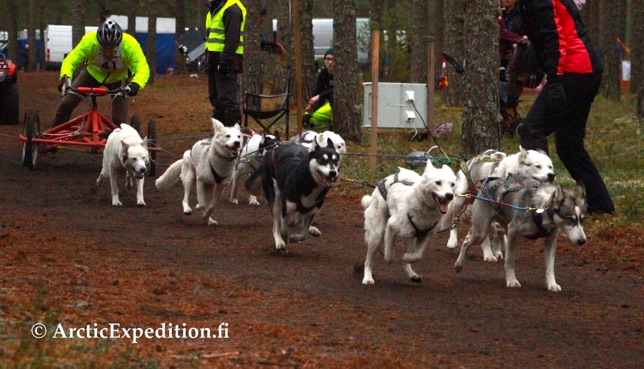The Arctic Expedition 8-dog racing team in the Finnish dryland Champiionships of 2016, SM Jämi 2016 winning the best Siberian husky team-price. Dogs from leaders to the wheel: LR Moon Runs Tiara ‘Tiara’, LL Vetoava Beata ‘Beata’, T1R SM-REK-8-2013 Kefeus Dimrost Avathar ‘Ava’, T2L Icesmile’s Kirima ‘Kiri’, T2R Arctic Soul Neva ‘Hera’, T2L Kasakan Jack Sparrow ‘Nappi’, WR Moonrun’s Cannonball ‘Cannon’, WL Vetoava Cinnamon ‘Sinna’