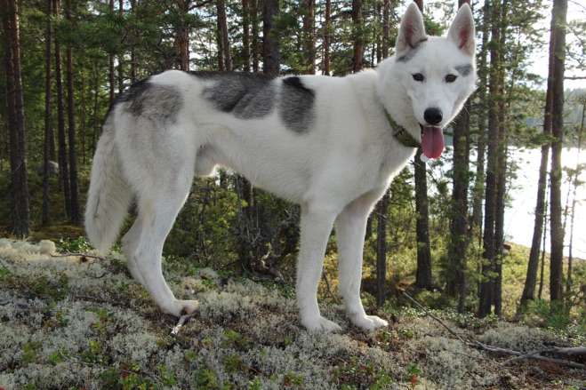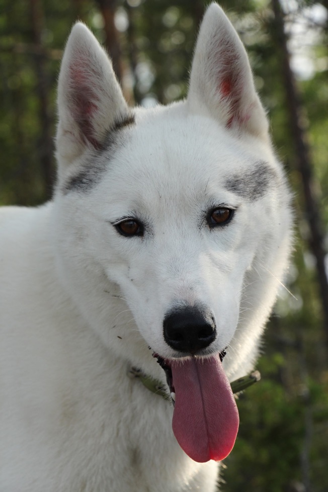 Nappi joined our team during fall 2016. He is a bit highter than medium-sized youn male and comes with an interesting LD-racing pedigree joining Swedish, Finnish and American lines: His dad Nordvikens Tigeröga is World Champion in dog sledding from 2015 and many of his nearby ancestors have run Finnmarksløpet, Pasvik Trail, Eastpoint Open or even Iditarod and Yukon Quest. - From the beginning we fell in love with his truly friendly and modest character. His trot and gallop are beatiful to watch. He has got pulling in his veins: He was part of the winning team to win the best Siberian husky team-price in the Finnish dryland sprint Champtionships 2016.