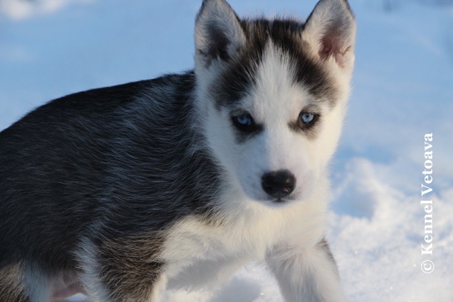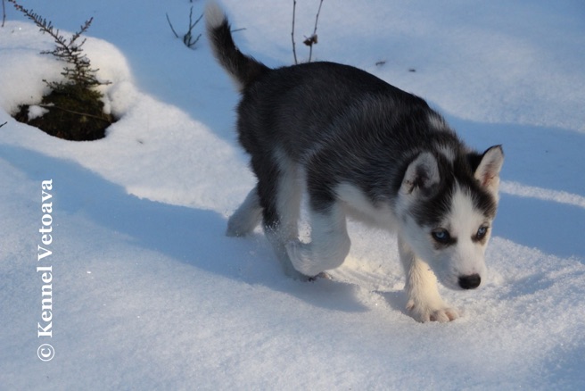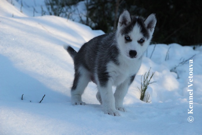 As Ealas comes from our own leaders Tiara and Kiri, her pedigree is full of Finnish Champions in dog sledding (SM), Working Dog Champions (KVA) and also show Champions (FIN MVA). Her mom Tiara is a fast leader dog with fine Vargevass-background, who has been running several mid-distance-competions in Russia. Her dad’s dad Maglelin Barak is a World Champion in dog sledding.