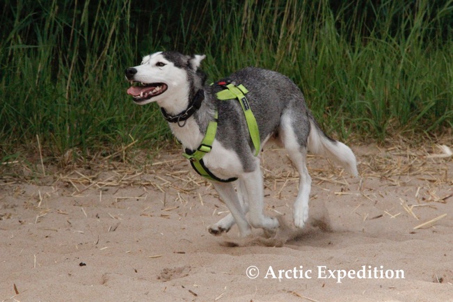 Elegia works well in our sled dog safaris and really likes the pats of our visitors.