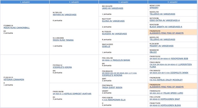 The Vetoava I-puppies have Vargevass, Icesmiles and Kefeus - lines nicely combined. There are several Finnish champions Sinna’s background. Cannon’s dad Nathan is the famous LD-leader of Vargevass. - Please click the chart to see the pedigree online in Finnish Kennel Club’s web pages.
