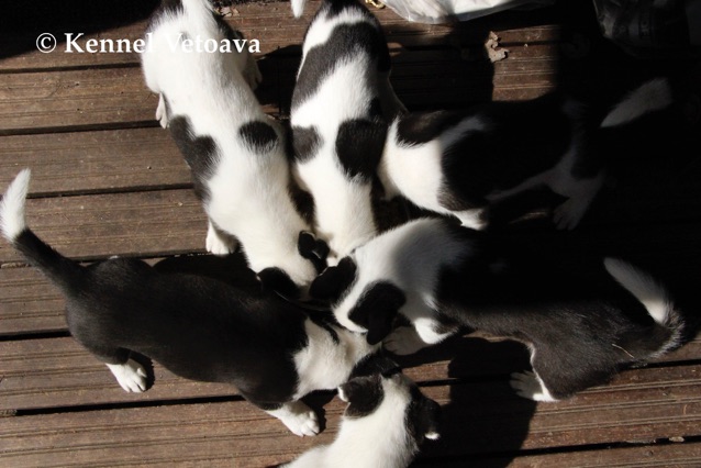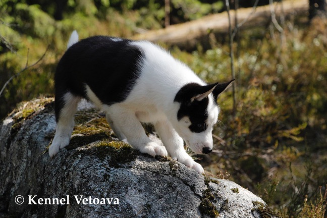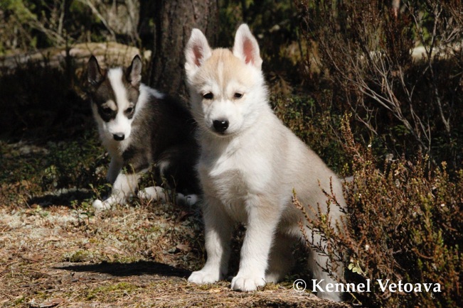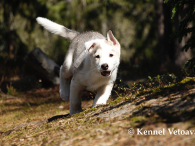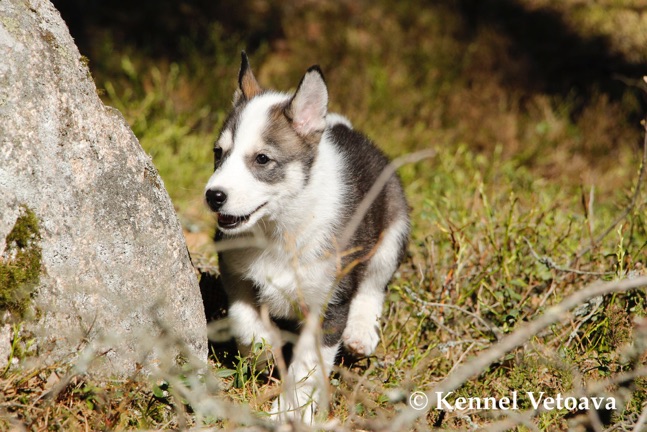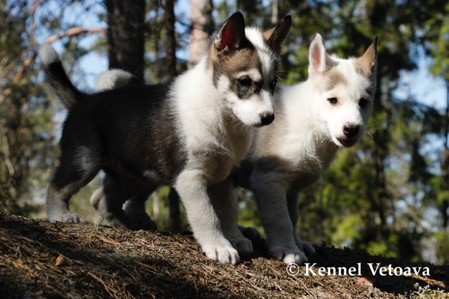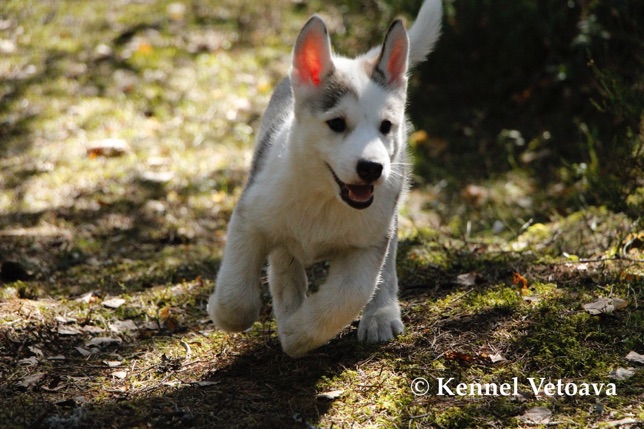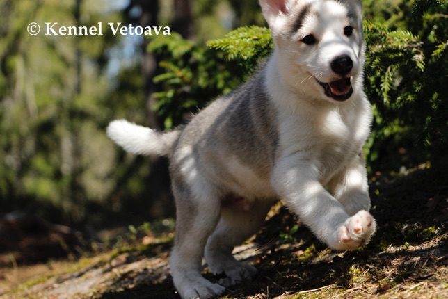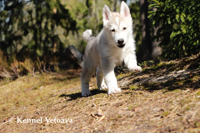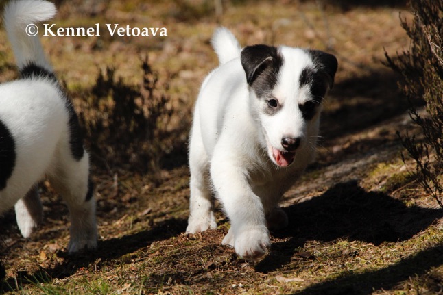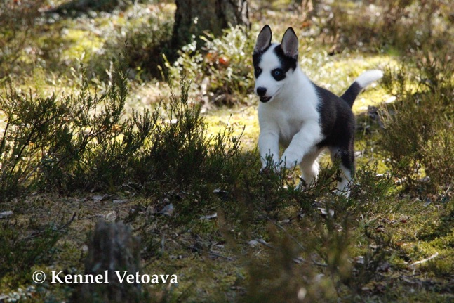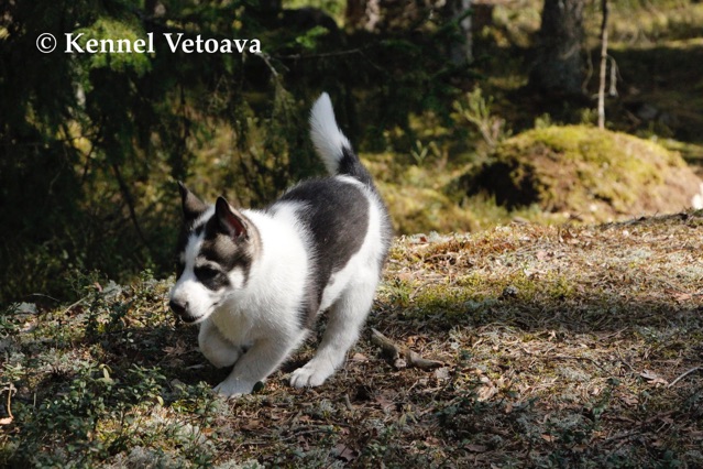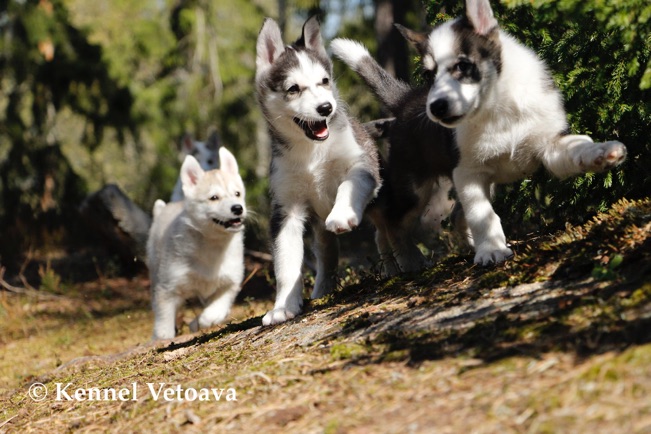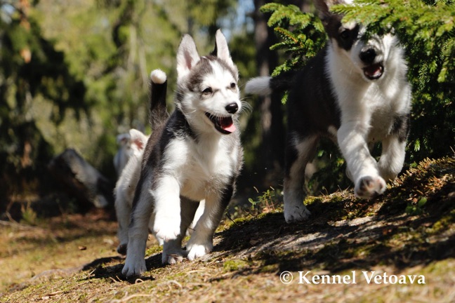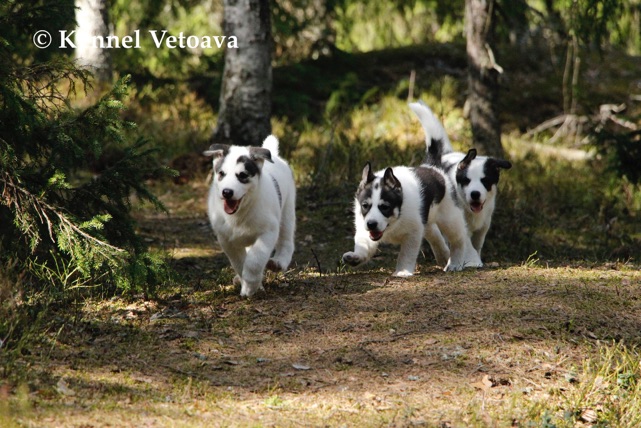 Vetoava I and J-puppies running in the woods