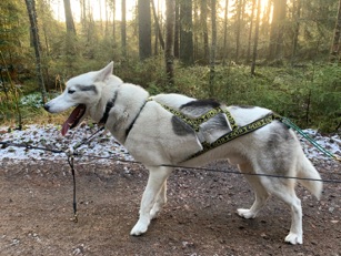 Nappi is our trusworthy leader dog, with open field capability. Nappi has both Finnish Working Dog Champion (FI KVA) and Finnish Show Champion (FI MVA) -titles. He has 2 x REK1 qualifications from a sled dog race and three certificates SERT from dog shows. He was the leader when our team became the best Siberian husky team in 8-dog class in 2018 in the Finnish Championships, Jämijärvi. A couple of weeks later he helped us to become 5th in the European Championships in Sweden. He has healthy eyes.