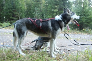 Cannon is our long distance sled dog, who has raced in international races in Sweden, Norway and Russia. His dad Nathan av Vargevass is quite a famous leader dog. Cannon is strong and friendly, always ready to go. From a sled dog race he has a REK1-qualification and from a dog show EH (very good). He seems to have a nonexistent hunter-instinct and drinks and eats super well. He has healthy eyes.