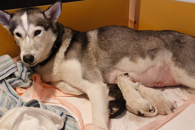 Iloisia uutisia: Tänään meidän johtajakoirallemme Elegialle syntyi kuusi reipasta pientä huskynalkua: neljä poikaa ja kaksi tyttöä. Uusi äiti on niin iloisena ja huolehtivaisena imettämässä ihania vauvojaan:)